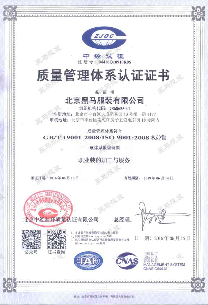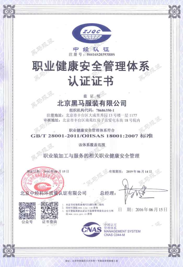 黑馬服裝營業(yè)執(zhí)照 黑馬服裝職業(yè)健康安全管理體系認(rèn)證證書 黑馬服裝機(jī)構(gòu)信用代碼證 質(zhì)量管理體系認(rèn)證證書