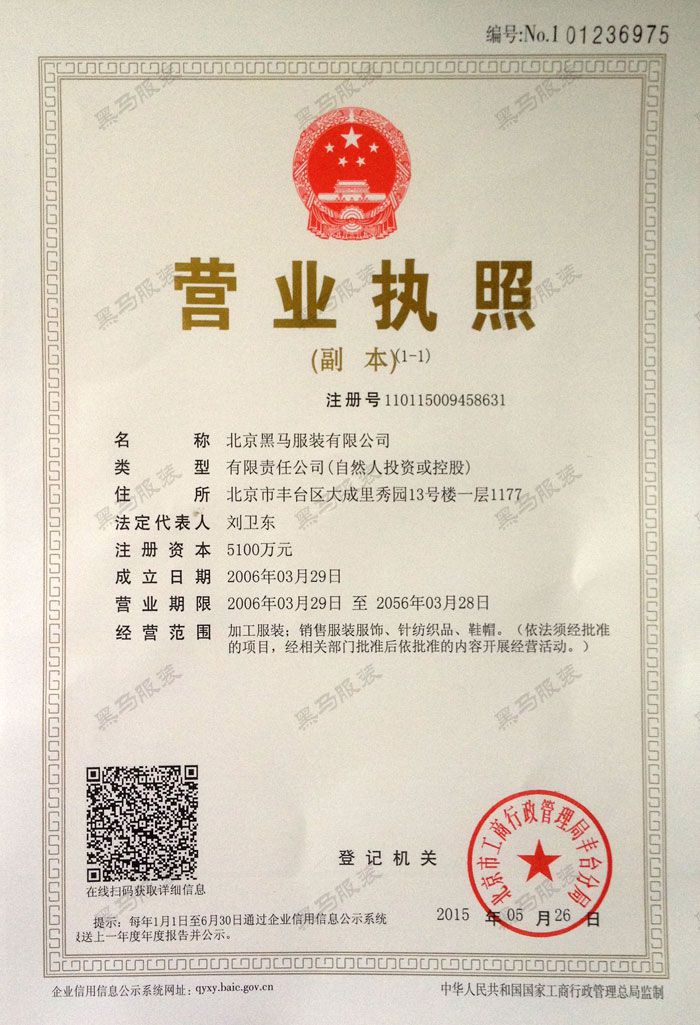 黑馬服裝企業(yè)資質(zhì)