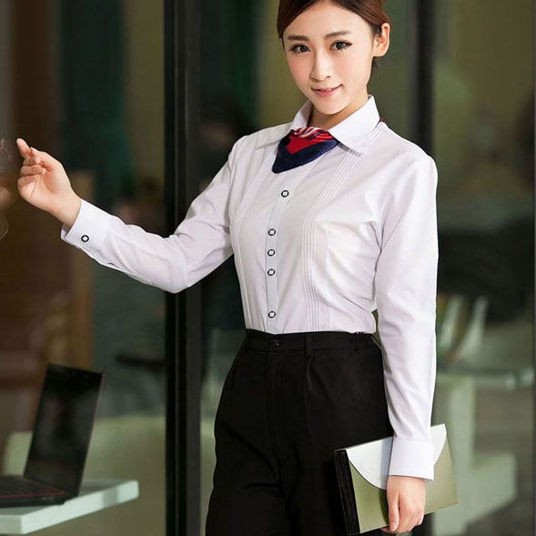 女式長袖大尖領襯衫CS-14